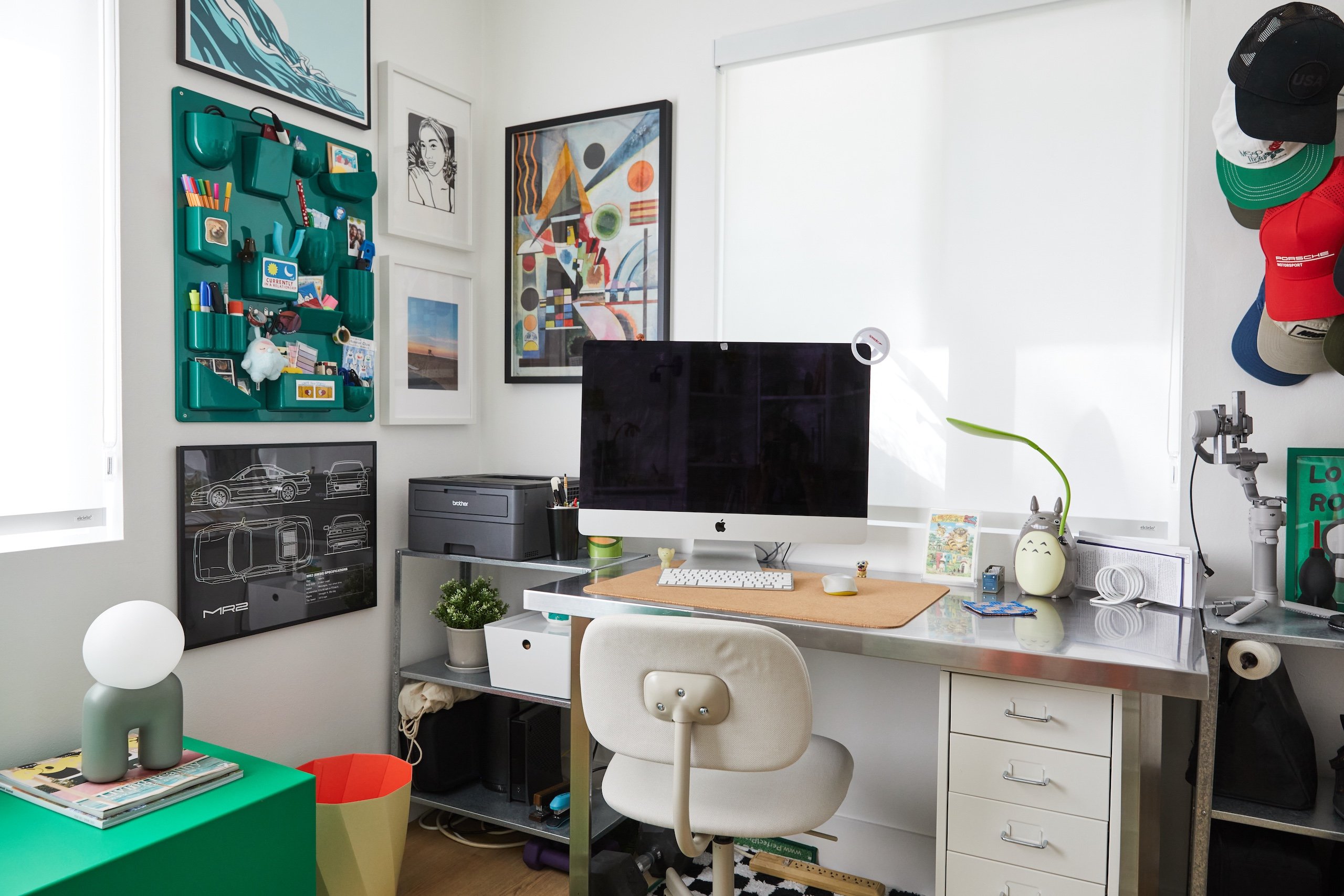 Desk chair: Ikea, similar. Print: Tate Modern Museum. Wall organizer: Aescraft. Lamp: Buddy.