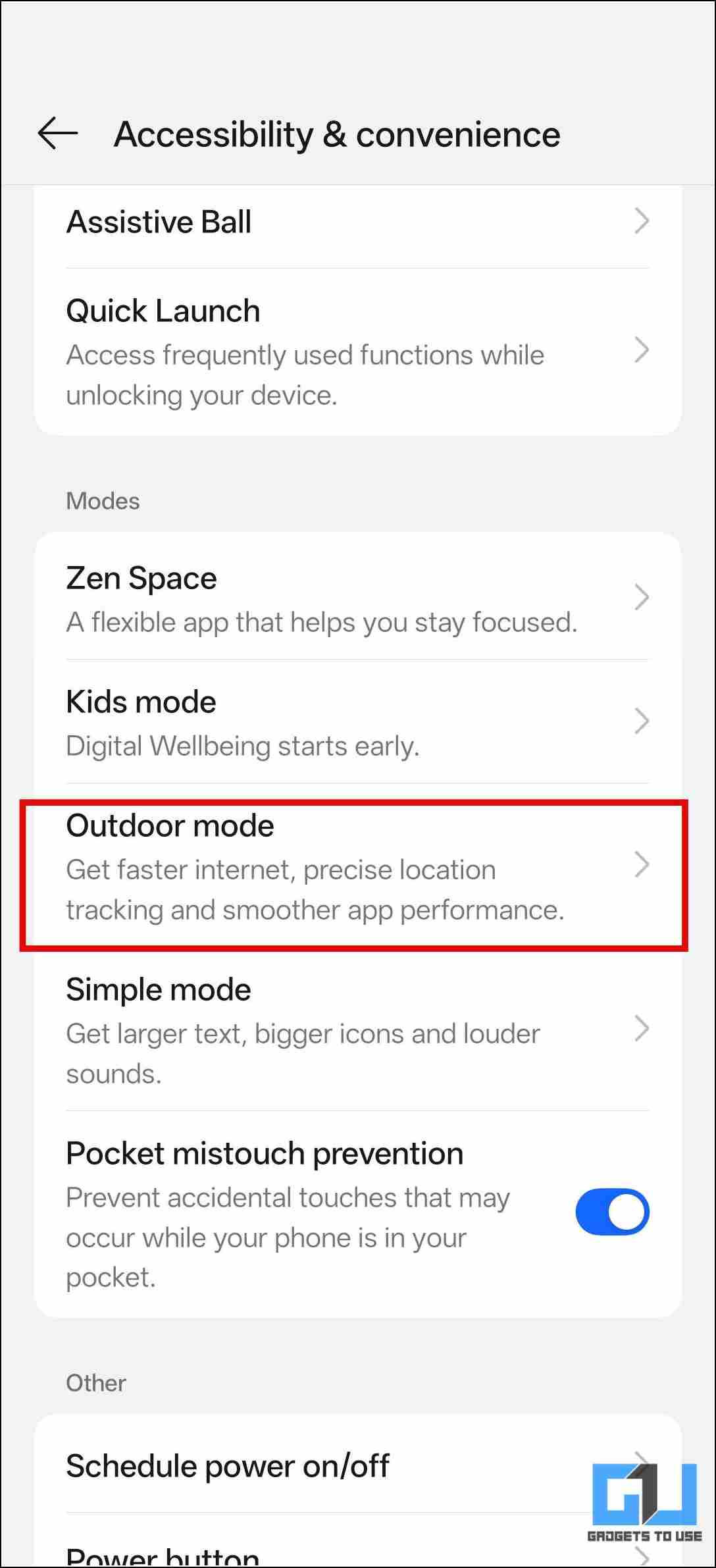 2. In this tab, tap on the ‘Outdoor mode’ option.