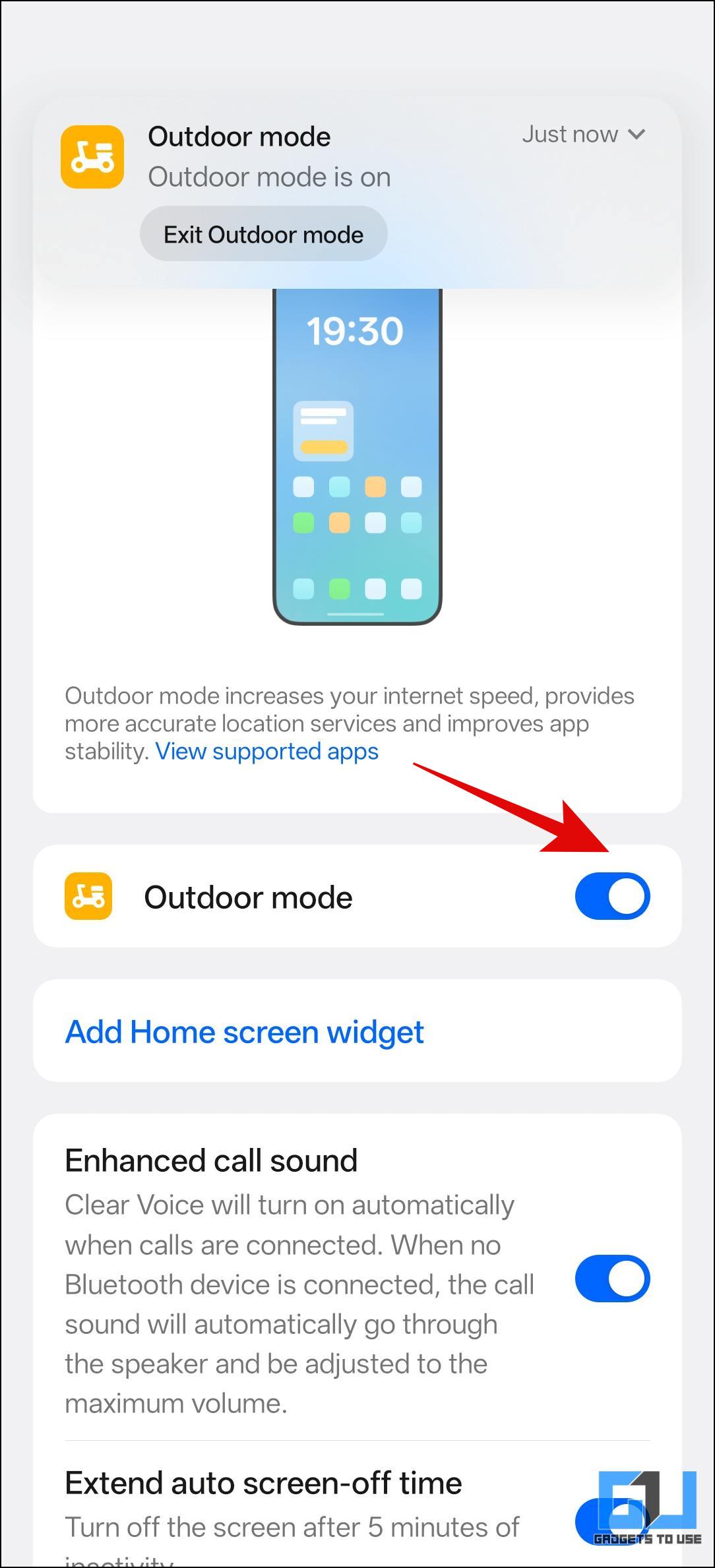 3. Toggle the ‘Outdoor mode’ and enable it.