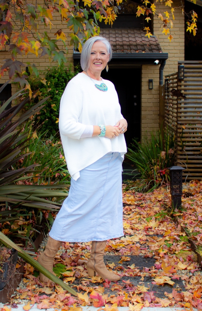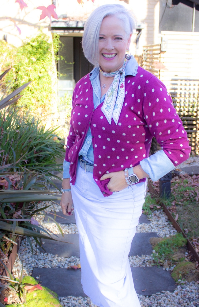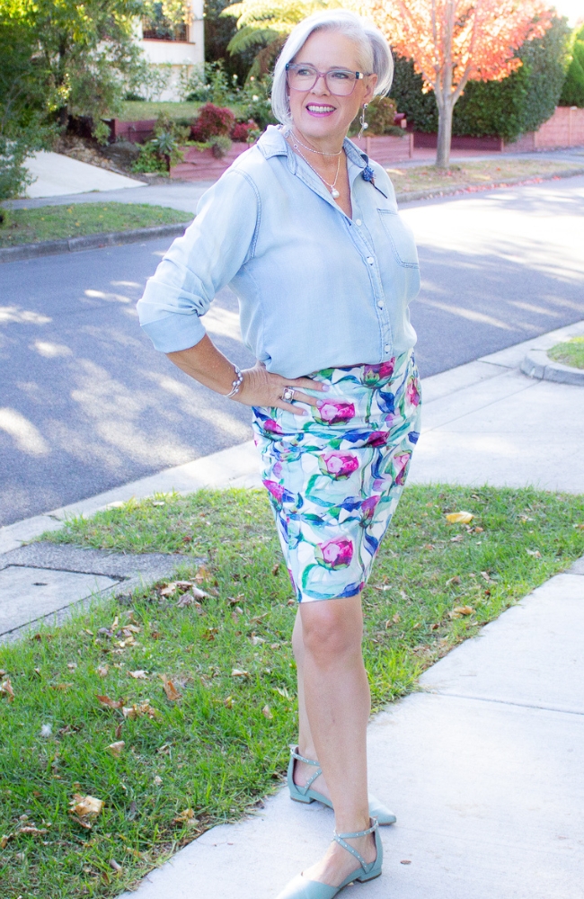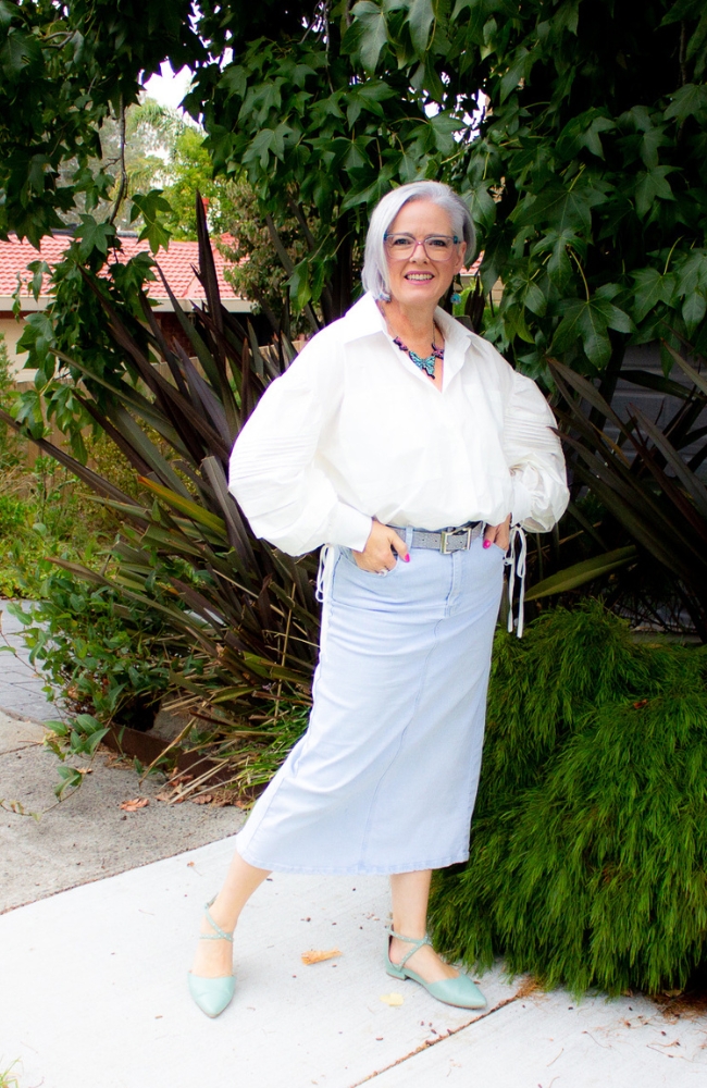 I paired this chambray shirt with the denim skirt featured in the second outfit on this page.  The shoes were also repeated from the third outfit.  Notice how the same garments and accessories can be used in multiple outfits – that’s where you get the greatest benefit from making choices that align with your personal style.